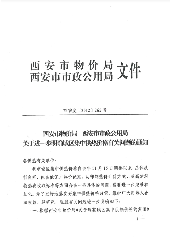 關于進一步明確城區集中供熱價格有關問題的通知